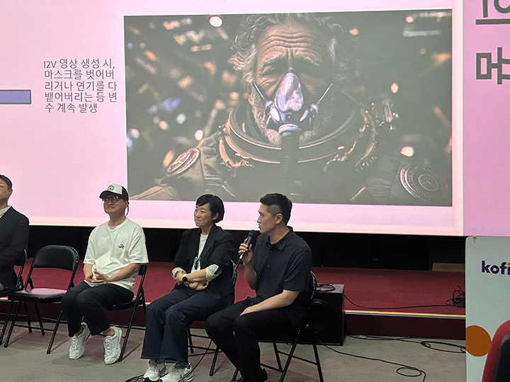 각 패널의 프레젠테이션이 종료된 후 테리 람 모더레이터와 패널들이 무대에 올라 간단한 질의 시간을 가졌다. “생성형 AI의 시대가 오면서 가장 많이 변화한 점”을 묻는 말에 양익준 감독은 “이렇게 큰 금액이 들어가는 프로젝트는 신인 창작자에게 오지 않는다. 블록버스터를 만들 기회가 생겼다는 게 내겐 가장 큰 변화”라고 답했다. 더불어 “AI 단편영화 <목격자>와 <마테오>는 각각 미국 샌프란시스코, 멕시코가 배경이다. 둘 다 그곳에서 일어나는 일인데, 로케이션 문제없이 구현할 수 있었다”는 점을 장점으로 뽑았다. 한편으로는 “AI가 오류를 일으킬 때도 있는데 그것이 새로운 영감을 주기도 한다”고 덧붙였다.