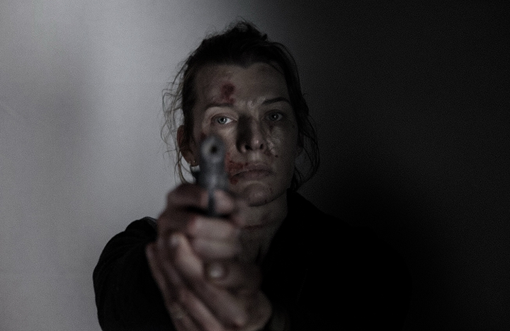 A scene from The Protector (left) and director Adrian Grünberg with Milla Jovovich