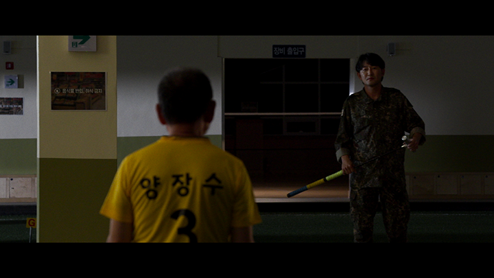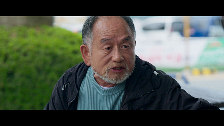 앞서 말했듯 영훈의 이 질문은 장수뿐만이 아닌 영화를 보는 우리의 자세를 고쳐 잡게 만드는 질문이기도 하다. 우리는 왜 영화 속 인물들을 이미 알고 있는 것처럼 생각했던 것일까. 왜 누군가를 내 마음대로 판단하고 더 이상 궁금해하지 않았던 것일까. 왜 물어보지 않았던 것일까. 익숙한 대사를 뱉고 뻔한 행동을 하는 전형적인 캐릭터들 다음에 장수의 “왜 안 물어보십니까?”라는 질문이 붙을 때, 우리는 비로소 영화의 부정적인 첫인상이 의도적인 것이었음을 깨닫게 된다. 이 시퀀스에서 또 하나 인상적인 연출은 영훈이 게이트볼 스틱을 마치 골프 스윙을 하듯 강하게 휘두르는 모습을 보인다는 것이다. 주로 고령층이 즐기는 상대적으로 느긋한 스포츠로 알려진 게이트볼에서 이러한 파워가 느껴질 수 있다는 것을 단박에 보여주는 장면으로, 여기서 관객이 느낀 당혹감을 감각적으로 표현해냈다는 점에서 뛰어나다.